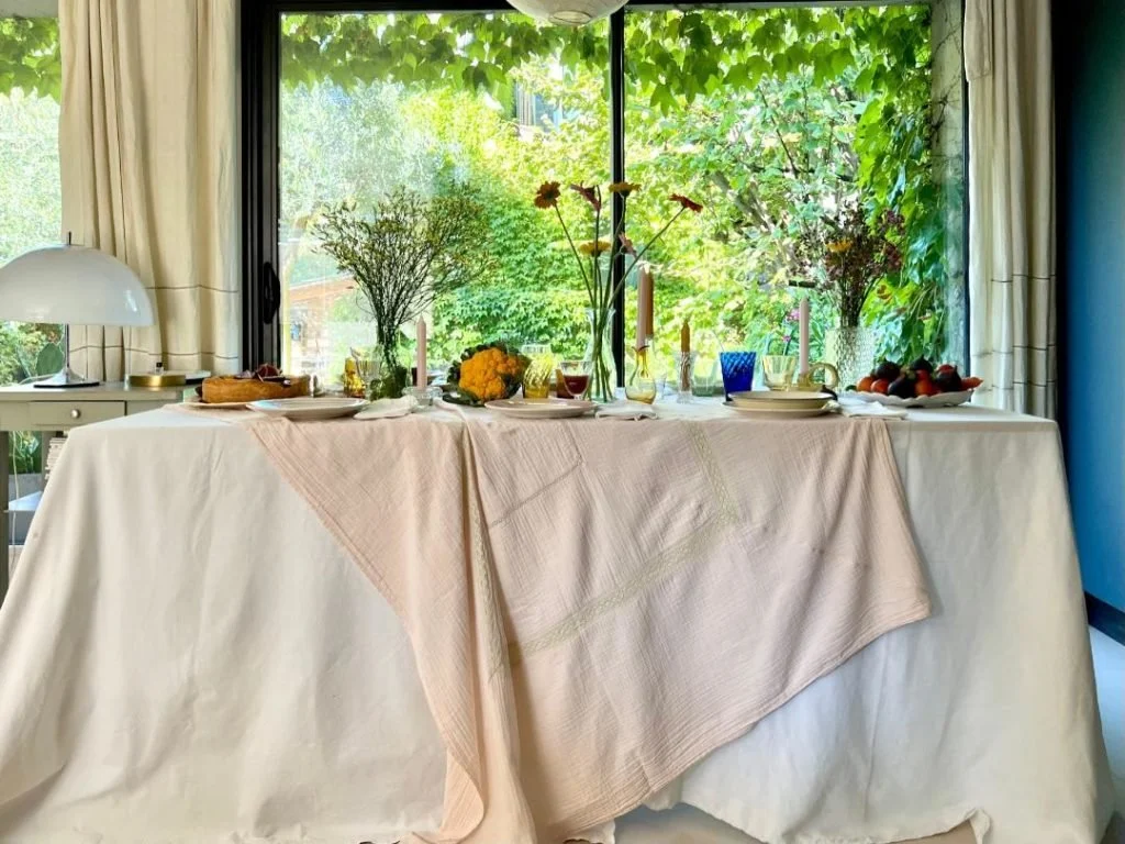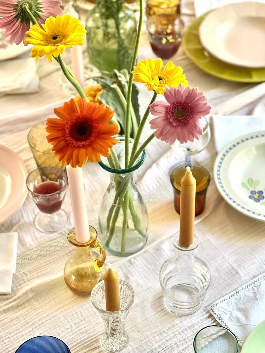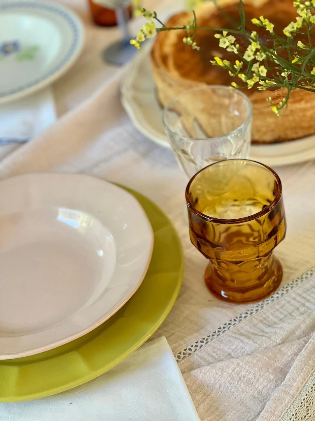 Tout au long de l’été, nous composons, nous dessinons et ajustons, notre table se dessine. Après deux mois de réflexions et de créations il est temps de nous retrouver chez Laetitia pour mettre en scène nos modèles chinés autour d’un banquet venu bousculer les classiques. Assiettes et verres dépareillés, serviettes brodées, nappes superposées, objets détournés, on s’amuse à dresser la table qui égayera votre quotidien. Toutes deux poussées par l’envie de mettre du soleil dans la maison à l’arrivée de l’automne, nous créons un joyeux mélange de styles et de couleurs. Du vert, du jaune, du bleu sans oublier le rose, notre couleur signature à chacune (encore un point commun tiens).